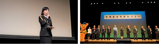 15日(土)には三鷹市の『三鷹市地域安全市民のつどい』に参加した伍代支援官。三鷹市の昨年の特殊詐欺被害件数62件、被害額1億6,000万円のうち、多くが特殊詐欺の犯人からの電話であるいわゆる『アポ電』から始まる被害であることを聞いた伍代支援官は、「一人で家にいるとき、電話が掛かってくると、家族や知り合いかと思って電話に出てしまいがちですが、一人で電話に出ないためには、家の電話を留守番電話設定にしてください。また、防犯機能付き電話機を設置することも非常に効果的です。アポ電を掛けてくる犯人は口がうまいので、絶対にお金が戻ってくるはずがないにもかかわらず、被害者はATMへ誘導され、お金を振り込んでしまいます。ATMで還付金等のお金が返ってくることは絶対にありません!怪しいと思ったら家族や警察に相談してください。そして、もし携帯電話で通話しながらATMを操作している人を見かけたら、“大丈夫ですか?”と声を掛けたり、警察に連絡したりするなど、地域住民一丸となって特殊詐欺から身を守りましょう。」と特殊詐欺の効果的な対策について来場者に訴えかけました。