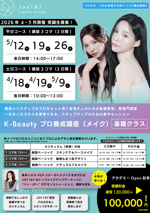 【2】5月開講:K-Beauty プロ養成 基礎講座(メイク・ヘア)
