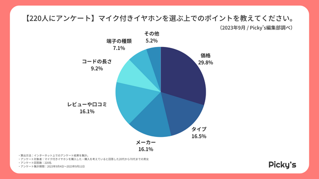 マイク付きイヤホンを選ぶポイントとして、特に多かった回答は「価格」でした。