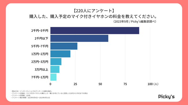 5千円以下のマイク付きイヤホンが多く選ばれていることが分かります。