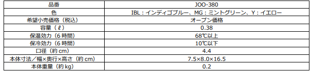 『サーモス 真空断熱ケータイマグ(JOO-380)』 仕様一覧