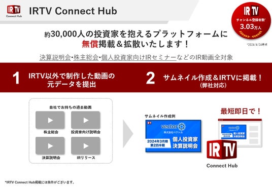 IRTV以外で制作したIR動画をIRTVで無償掲載(無期限)