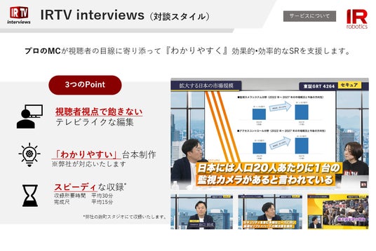 IRTVは今後も企業の最適なIR活動と投資家の皆様に価値ある情報を提供するために、常に新しい取り組みを行ってまいります。
