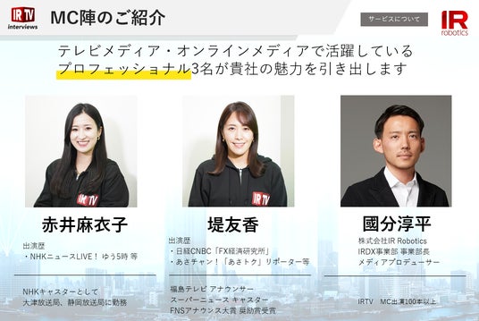 プロのMCが視聴者の目線に寄り添って『わかりやすく』企業情報をお届けいたします。