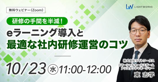 クラウド型学習管理システム(LMS)市場で最大の売上シェア*を持つ株式会社ライトワークス(本社:東京都千代田区、代表取締役:江口夏郎、以下「ライトワークス」)は、2024年10月23日(木)に無料ウェビナーを開催します。