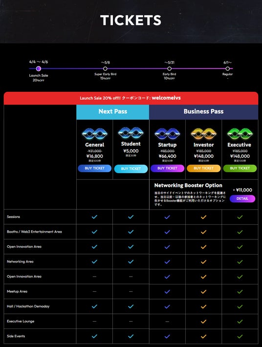 ・IVS Crypto 2024 KYOTOのNEXT Pass保持者は、EDCON 2024のGeneralチケットを60%割引で購入できます。