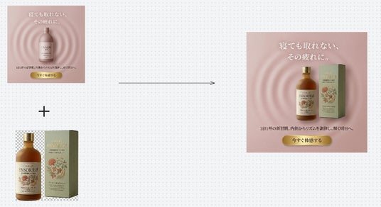 ディスプレイ広告では、同一レイアウトのまま商品画像・ロゴ・キービジュアルだけを差し替えて訴求を切り替える場面が多くあります。一方で、画像生成や編集ツールによって全体を作り直すと、背景・構図・光の入り方といった「バナーとしての統一感」が崩れやすく、修正や手戻りが発生しがちです。