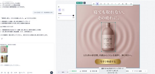 - ラフ作成:ブランド理解済みAIとの対話で、最適な訴求軸とコピーを生成