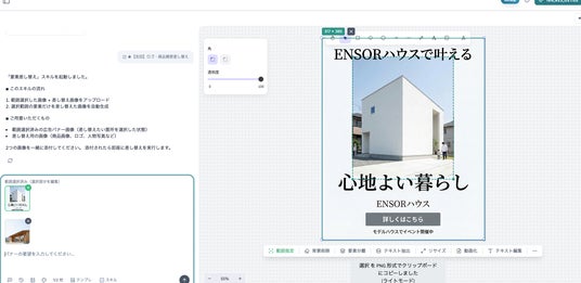 - AI編集:高品質なデザイン生成。背景差し替えや横展開を含め、3分での修正・10分での入稿完了を実現