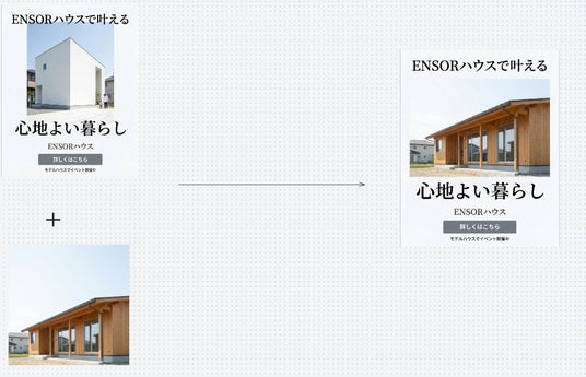 ENSORは今回の機能追加により、範囲選択済みのバナー画像と差し替え用素材の2枚をアップロードするだけで、指定部分の要素のみを入れ替えた画像を得られる環境を提供します。