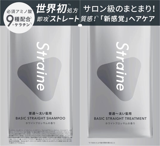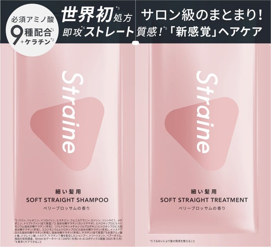 Aiロボティクス株式会社(本社:東京都港区、代表取締役社長:龍川 誠)が展開するストレートヘアケアブランドStraine(ストレイン)は、髪質に合わせて選べる新ラインのシャンプー&トリートメント2種を、2026年4月1日(水)より全国のドラッグストア・バラエティショップにて発売開始しました。