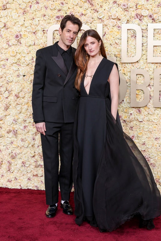 Nominee for Best Original song for “Dance the Night” and “I’m Just Ken”, Mark Ronson wore a Gucci custom black wool tuxedo with gold Round Interlocking G button detail, black shirt and Gucci Horsebit black leather loafers. Grace Gummer wore a Gucci custom black silk gown with chiffon cape and Horsebit detail.