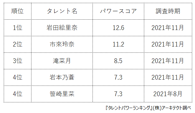 タレントパワーランキングを詳しく知りたい方はこちら↓