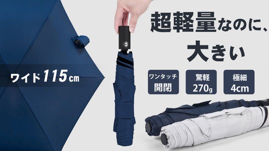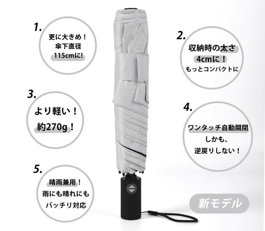 さらに、ワンタッチ自動開閉傘では珍しい厚さ40mmの極薄設計で、持ち運びもラクラク。カバンやリュックにもすっきり収納でき、外出のお供に最適です!