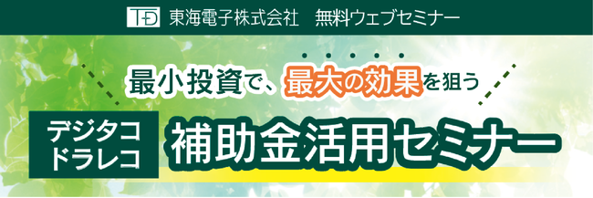 飲酒運転防止のためのアルコール検知器及びIT点呼システムを開発・販売する東海電子株式会社(本社:静岡県富士市 代表取締役:杉本 哲也)は、この度、 『 〈最小投資で、最大の効果を狙う〉デジタコ・ドラレコ補助金活用セミナー』(無料)を8月22日(月)に開催いたします。