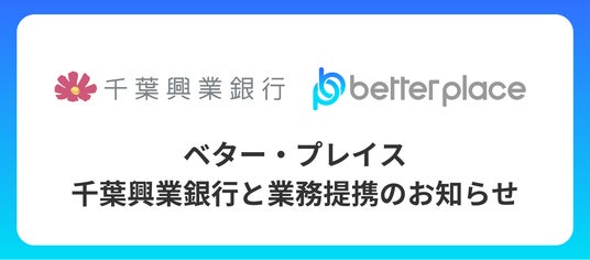 本提携は、千葉県の企業が直面する人材定着における課題の解決を目的としています。この提携を通じて、千葉興業銀行は人材定着に悩む法人顧客に対して、ベター・プレイスが普及推進する「はぐくみ企業年金」を案内し、千葉県内の企業での導入拡大を図ります。