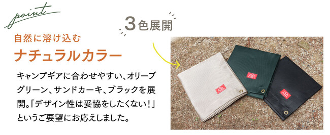 漆黒の夜空に映えるブラック、森と調和するオリーブグリーン、大地や木々の豊かな色合いを醸し出すサンドカーキが焚火シーンを更に盛り上げます。また、専用の収納ケース付きだから持ち運びが楽々。ブラック無地のケースがキャンプの雰囲気にマッチします!