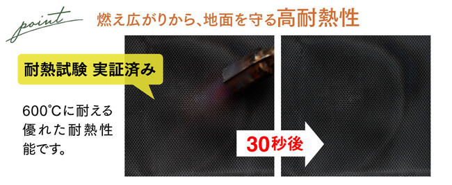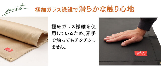 焚火なら十分の耐熱性!瞬間耐熱温度1500℃、作業温度600℃で燃え広がりから地面を守る!縫製糸も極細ガラス繊維だから耐久性抜群!