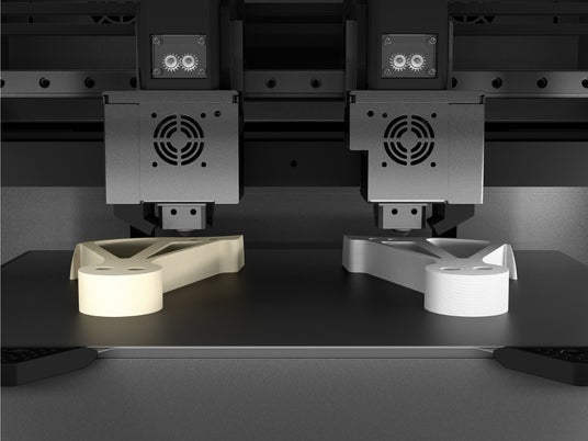 INTAMSYSとして初めて、推奨印刷速度300mm/s、最大移動速度500mm/s、最大加速度10000mm/s2の高速造形に対応。デュアルヘッドの余熱などの時間も最適化され、産業マテリアルを高速で造形することが出来ます。