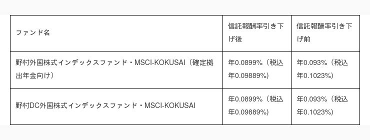 野村アセットマネジメント株式会社(CEO兼代表取締役社長:小池広靖、以下「当社」)は、以下の確定拠出年金(DC)専用の2ファンド(以下「対象ファンド」)について、信託報酬率を引き下げました。