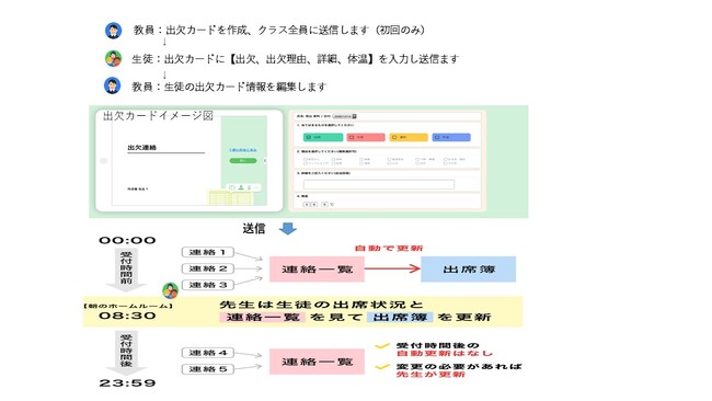 ・保護者 / 生徒が出欠カードを使って出欠、欠席理由、検温情報を教員へ連絡