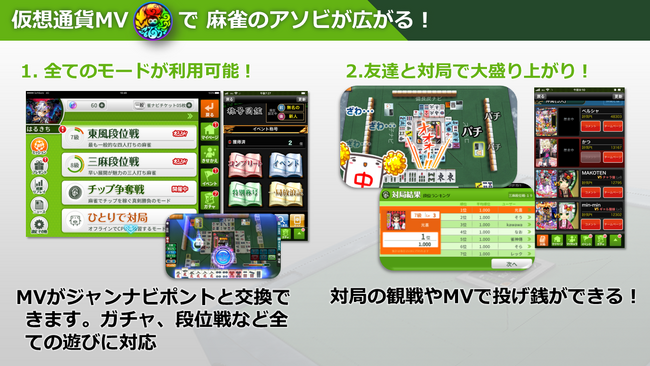「GENSO」との提携に伴い、GENSOでご利用可能な仮想通貨(トークン)「MV」をジャンナビゲーム内にインポートすることでジャンナビポイントとしてご利用することでできる機能を追加予定です。