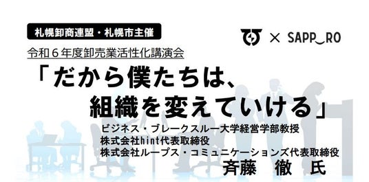 札幌市では、札幌市内で卸売業を営む方々に向けて毎年「卸売業活性化講演会」を開催しております。今年度は、「読者が選ぶビジネス書グランプリ2023」(マネジメント部門) を受賞した書籍『だから僕たちは、組織を変えていける』の著者である、斉藤 徹 氏を講師に迎え開催いたします。