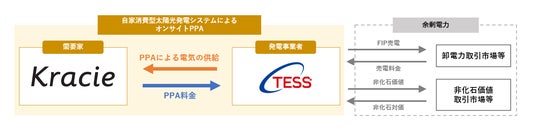 テスホールディングス株式会社(本社:大阪市淀川区、代表取締役社長:山本 一樹、以下「当社」)は、連結子会社であるテス・エンジニアリング株式会社(本社:大阪市淀川区、代表取締役社長:高崎 敏宏、以下「テス・エンジニアリング」)が、クラシエ株式会社(本社:東京都港区、代表取締役 社長執行役員:草柳 徹哉、HP:https://www.kracie.co.jp/、以下「クラシエ」)の新工場である京都工場向けに、オンサイトPPAモデル※1を活用した自家消費型太陽光発電システムによる再生可能エネルギー電気の供給(以下「本事業」)を2025年11月から開始いたしましたのでお知らせいたします。
