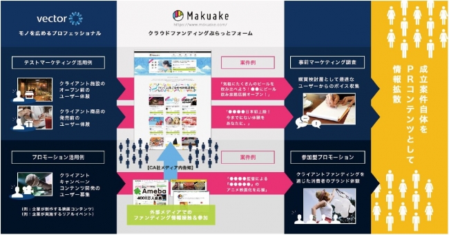 今回の業務提携により、ベクトルが持つクライアントに対してMakuakeを通じたコンテンツの開発を行う事で、企業と一般消費者がクラウドファンディングを通じてコミュニケーションを図る事が可能になります。