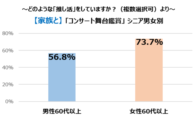 シニア女性は「コンサート舞台鑑賞」を「家族」「友人」と楽しんでいる。(シニア男性より高いポイント)
