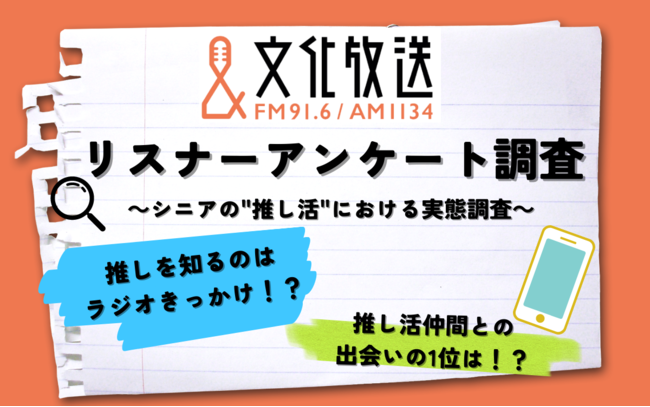 文化放送は、全国の文化放送リスナー(全世代の男女)に向け、「推し活」に関する項目を含む実態調査をウェブアンケートで実施しました。(調査期間: 2022年12月8日~2023年1月7日)