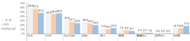 シニアが推しの存在を知るのは46.9%が「ラジオ」。(全世代平均の42.9%を上回る)