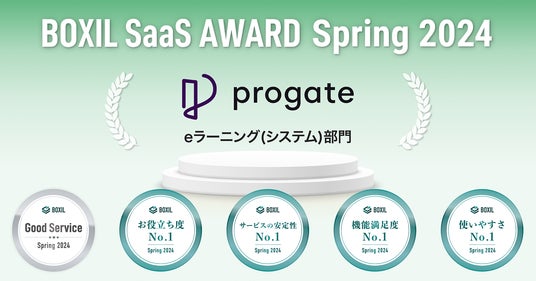 株式会社Progate(本社:東京都渋谷区、代表:加藤將倫、以下Progate)が提供するオンラインプログラミング学習サービス「Progate」は、スマートキャンプ株式会社(以下「スマートキャンプ」)が主催する「BOXIL SaaS AWARD Spring 2024」のeラーニング(システム)部門で「Good Service」ほか4つの賞に選出されたことをお知らせいたします。