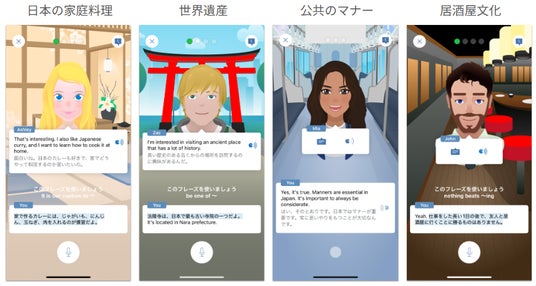2016年9月にリリースしたAI英会話アプリ。第二言語習得理論と最新のAI技術(音声認識や生成AI・自然言語処理など)を融合させることで、講師予約や教室への移動を伴うことなく1日15分~の学習で効率的に英会話力を習得します。また、1,000以上のシーンからなるストーリー仕立てのレッスンでキーフレーズや語彙・発音・イントネーション(抑揚)などを総合的に学び、楽しく、実用的な英会話を習得できます。2025年6月時点でApp Store・Google Playの評価で「4.5」を獲得。