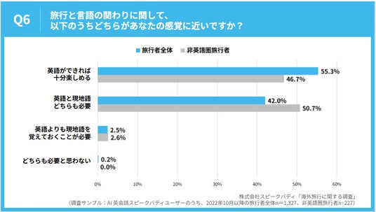 - 非英語圏旅行者で「英語よりも現地語を覚えておくことが必要」と答えた人は2.6%