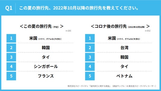 ・この夏 & コロナ後の旅行先トップ5:米国が首位で、アジア圏がそれに続く傾向