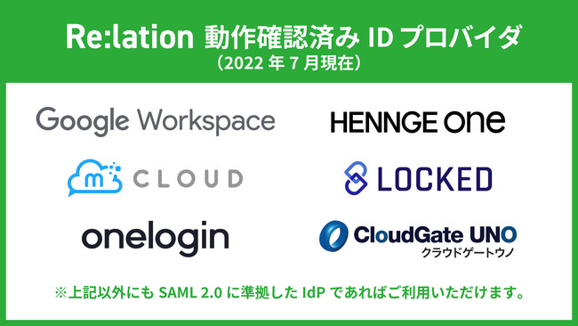 『Re:lation』は、2022年7月現在下記IDプロバイダ(IdP)にて動作確認を行っております。