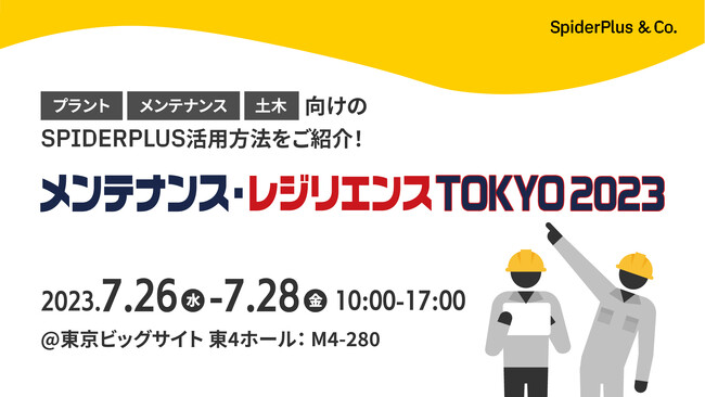 スパイダープラス株式会社(本社:東京都港区、代表取締役社長:伊藤謙自、証券コード:4192 東証グロース、以下「スパイダープラス」)は、2023年7月26日(水)から東京ビッグサイトで開催される『メンテナンス・レジリエンスTOKYO 2023 - 第49回 プラントメンテナンスショー』に出展いたします。