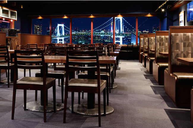 お台場店は2000年4月1日に東京都港区台場にオープンいたしました。東京都でも人気の観光エリア・お台場にある「アクアシティお台場」の6階に位置しています。店内は船室や港の酒場をモチーフにした内装を施しており、落ち着いた雰囲気でゆったりとお食事をお楽しみ頂けます。また、特筆すべきは窓から見えるまるで宝石のような「抜群の景色」。レインボーブリッジ・東京タワー・東京湾が一望出来、昼夜を問わず素晴らしい光景が広がります。特にカウンター席から見る景色は圧巻で、カップルのお客様を中心に人気のお席となっております。