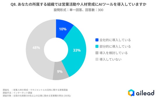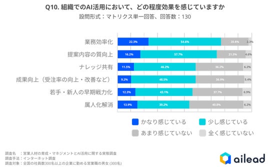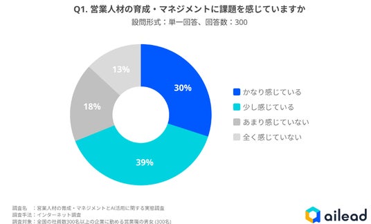 株式会社ailead(本社:東京都港区、代表取締役:杉山大幹)が提供する商談・面談解析クラウド「ailead(エーアイリード)」は、全国の営業職300名を対象に「営業人材の育成・マネジメントとAI活用に関する実態調査」を実施しました。