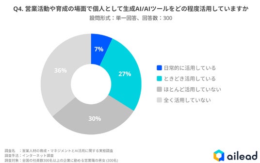 - 個人でAIを日常的に活用している営業職はわずか7%