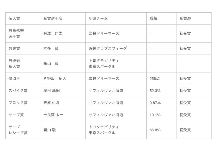 2019-20 V.LEAGUE DIVISION3 MEN 個人賞受賞選手