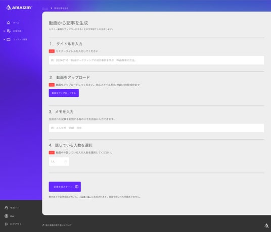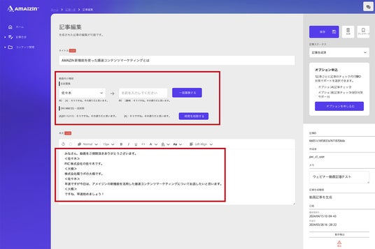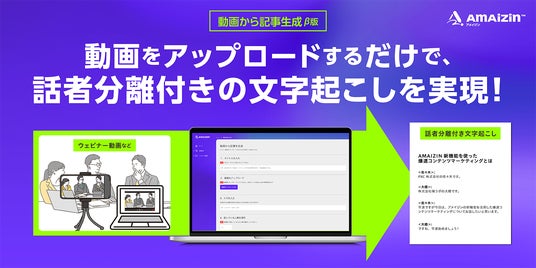 Pioneer of AI/SPを標榜し、セールスプロモーションとAIを活用したマーケティング支援を行うPXC株式会社(本社:東京都台東区、代表取締役社長:菅野健一)は、SEOライターのノウハウと生成AI(ChatGPT)を融合したAIコンテンツ生成サービス「AMAIZIN(アメイジン)https://amaizin.biz/」に対し、株式会社喋ラボが提供する動画活用DXソリューション「いきなり議事録」との技術連携により、動画から音声を文字起こしする機能(β版)をリリース致しました。