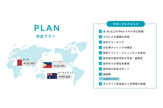現職の仕事と並行して留学生活を送るのは体力的にもスケジュール的にも難しく、休職又は退職をしてからの留学を検討される方も多いのではないでしょうか。とはいえ、一度仕事を辞めてしまうとキャリアが止まらないか、再就職ができるのかどうか等、社会人留学にはキャリアに関する不安もありますよね。そんな方にこそおすすめしたいのが「社会人向けキャリアアップ留学」本プランでは、海外留学を経験しながら、どこでも働けるWebスキルを磨くことができます。さらに留学先で英語を学ぶため、帰国後の就職活動も有利に働きます。