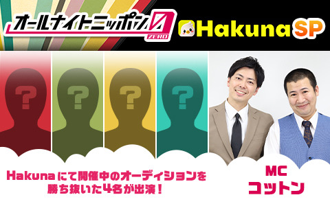 Hakunaで実施しているスペシャルオーディションの特番「オールナイトニッポン0(ZERO) ~Hakuna SP~」が、8月19日(土)27時から2時間にわたって生配信されます。