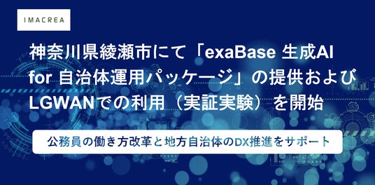 株式会社イマクリエ(本社:東京都港区、代表取締役:鈴木信吾、以下、当社)は、神奈川県綾瀬市に「exaBase 生成AI for 自治体運用パッケージ」の提供を開始したことをお知らせします。