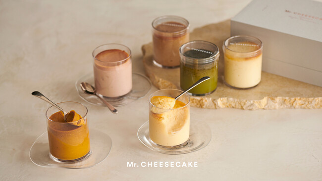 ブランド初のカップタイプの商品「Mr. CHEESECAKE Petit」は、大切な人へのお土産にもお選びいただけるよう、カットの必要がなく手軽にお召し上がりいただける商品です。種類は、定番フレーバー(クラシック)、キャラメル、レモン、パンプキン、ストロベリー、グリーンティーの全6種類をご用意し、酸味が好きな方、濃厚な味わいが好きな方、甘さと酸味を両方楽しみたい方など、さまざまなお客様が楽しめるようになっています。カップの上はベイクド、下はレアのようなMr. CHEESECAKEらしい食感を堪能いただきながら、お気に入りのフレーバーを見つけてみてください。