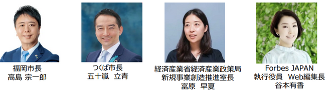 また、自治体の首長(富谷市、つくば市、高岡市、北九州市、福岡市)によるトークセッションを開催します。