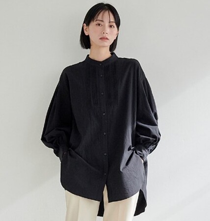 サラリとした気持ちのいい生地感で、胸元のピンタックや