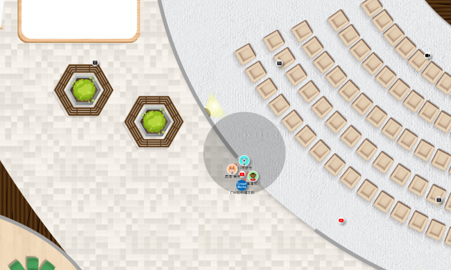 〇参加者交流ブース:バーチャル空間上で参加者どうしで交流することができます。
